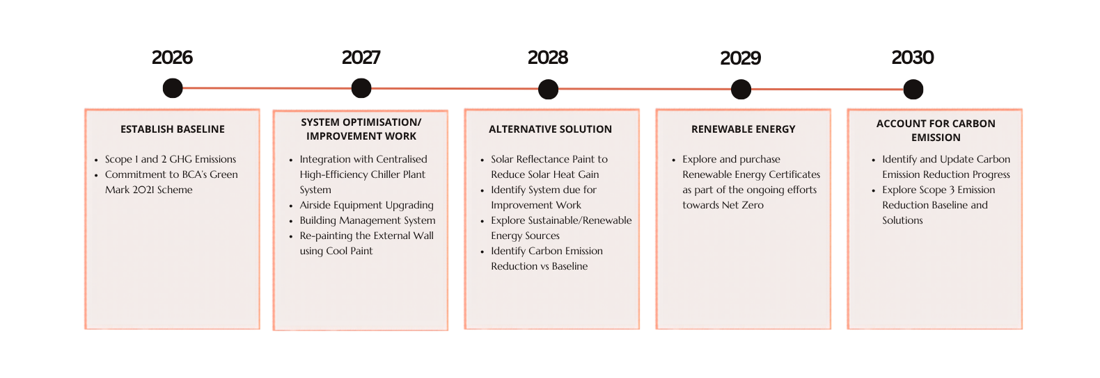 The building is committed to working towards Net Zero Carbon emissions, focusing on reducing Scope 1 and Scope 2 operational energy-related emissions that are within the building’s operational boundary, while taking a holistic approach towards overall emissions reduction. This will be achieved through the implementation of energy efficiency measures, as well as exploring the adoption of renewable electricity plans and renewable energy purchases.